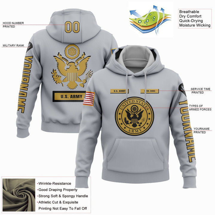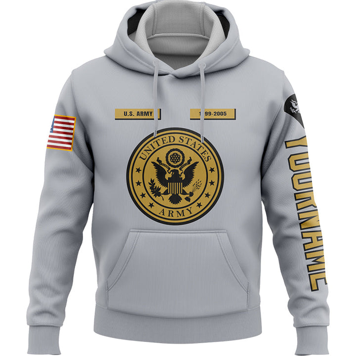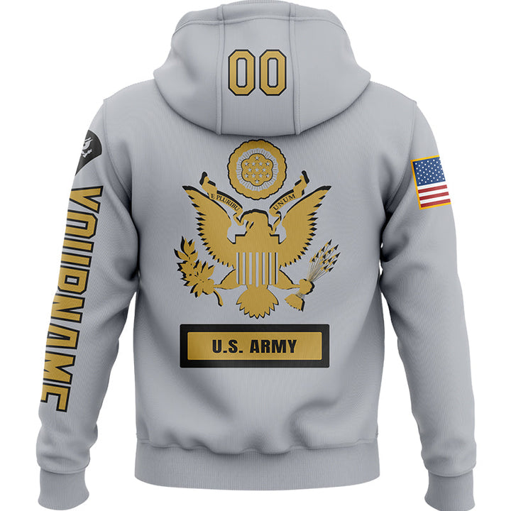 Custom Grey U.S Army Military Rank Veteran Name Hoodie