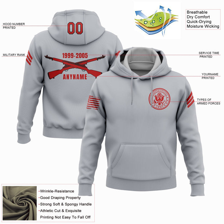 Custom Grey U.S Army Military Rank Veteran Name Number Hoodie