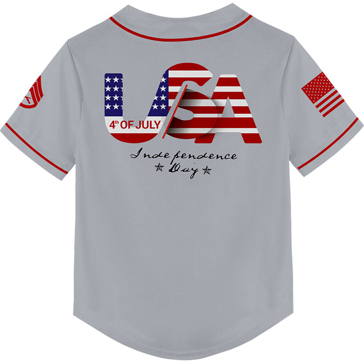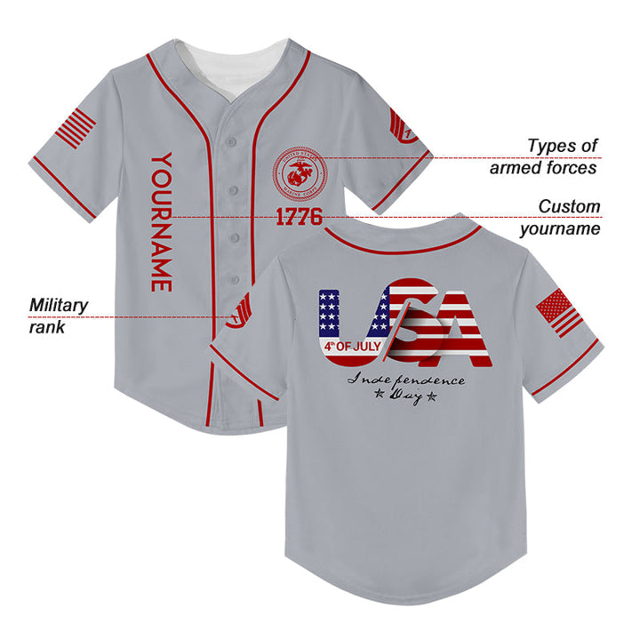 Custom Grey USA Military Rank Name Independence Day Baseball Jersey