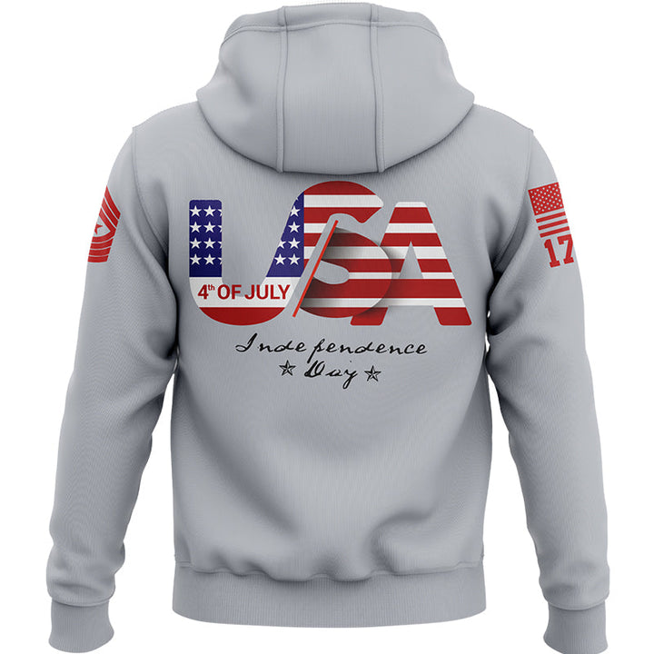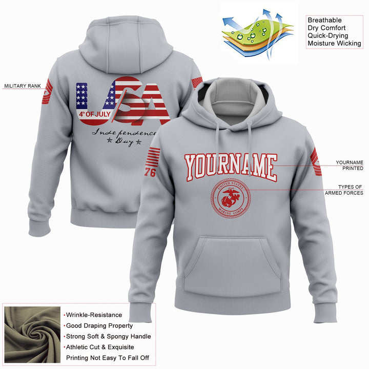Custom Grey USA Military Rank Name Independence Day Hoodie | Father's Day Gifts