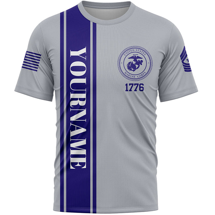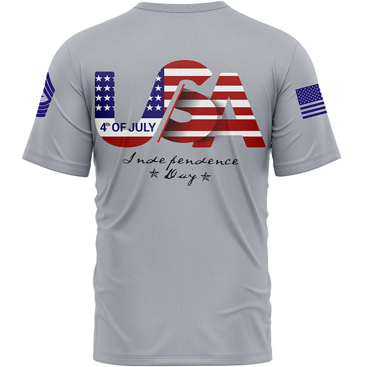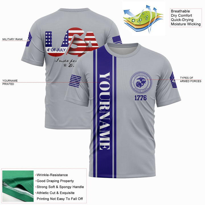Custom Grey USA Military Rank Name Independence Day T-Shirt