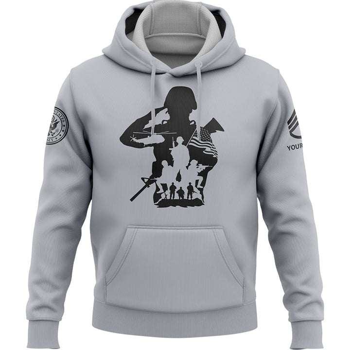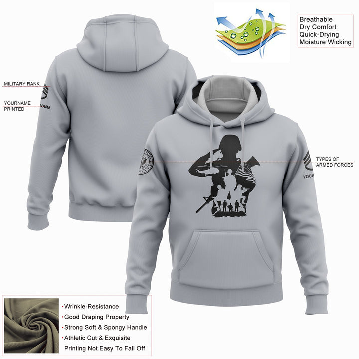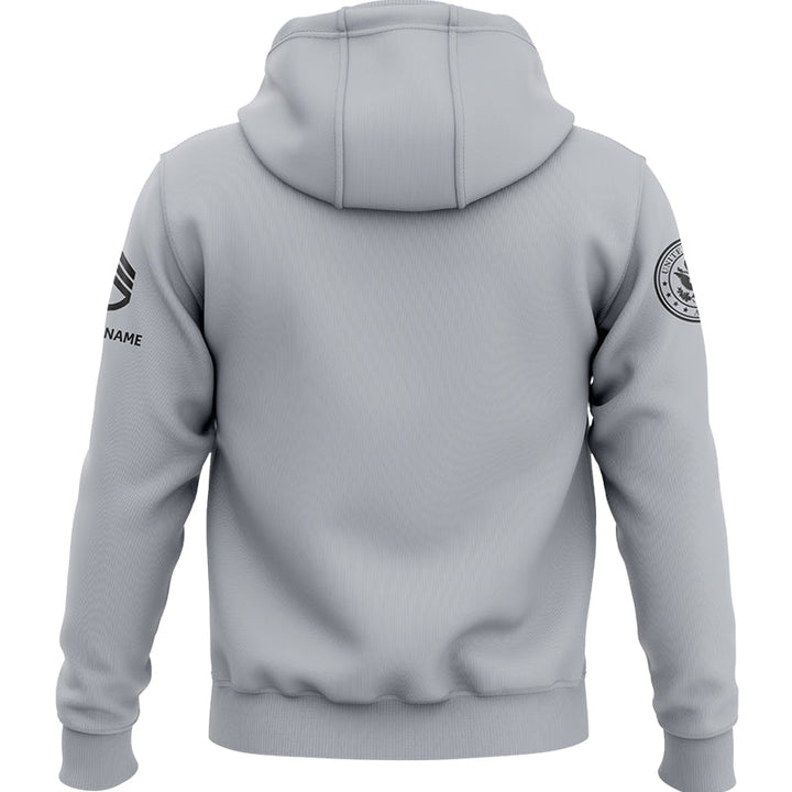 Custom Grey USA Military Rank Veteran Name Hoodie