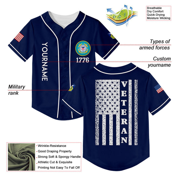 Custom Navy 1776 American Flag Military Rank Name Veterans Day Baseball Jersey