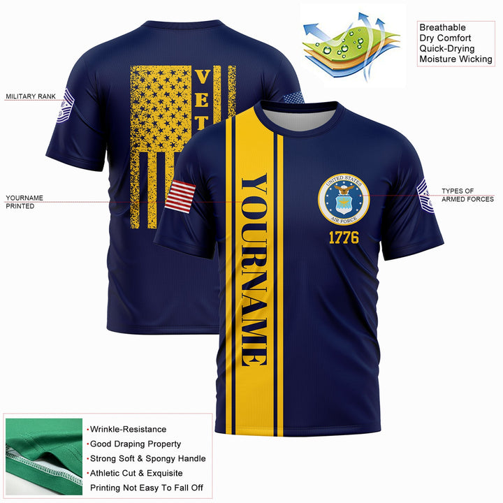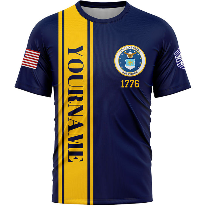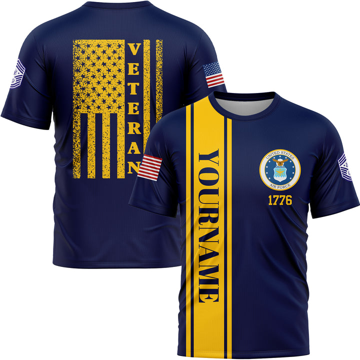 Custom Navy 1776 American Flag Military Rank Name Veterans Day T-Shirt