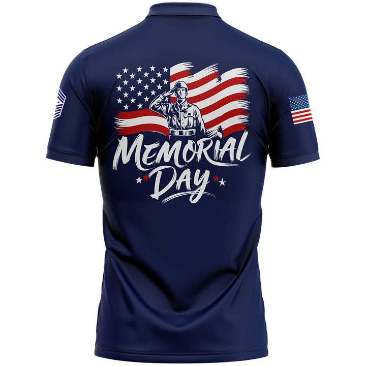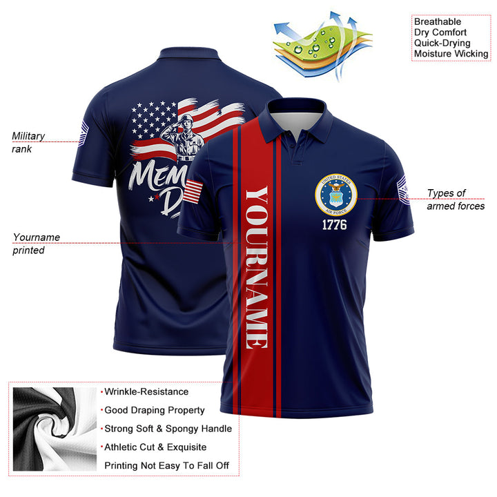 Custom Navy 1776 American Flag U.S Air Force Military Rank Name Memorial Day Golf Polo Shirt