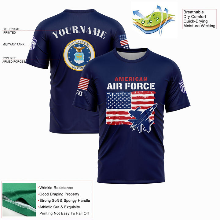 Custom Navy 1776 American Flag U.S Air Force Military Rank Name T-Shirt