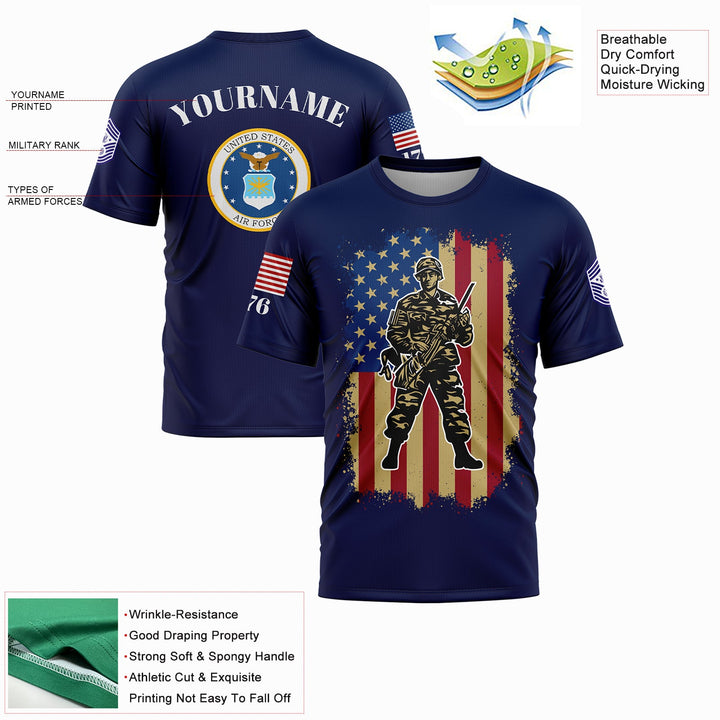 Custom Navy 1776 American Flag U.S Air Force Military Rank Name T-Shirt