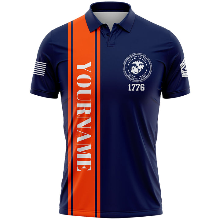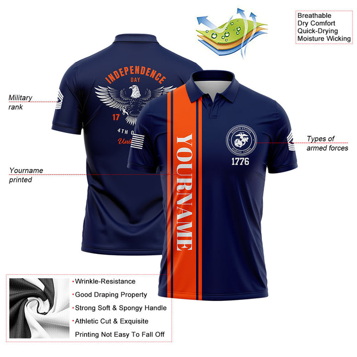 Custom Navy 1776 Eagle Military Rank Name Independence Day Golf Polo Shirt