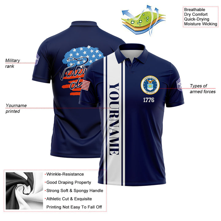 Custom Navy 1776 Flag U.S Air Force Military Rank Name Veterans Day Golf Polo Shirt | Father's Day Gifts