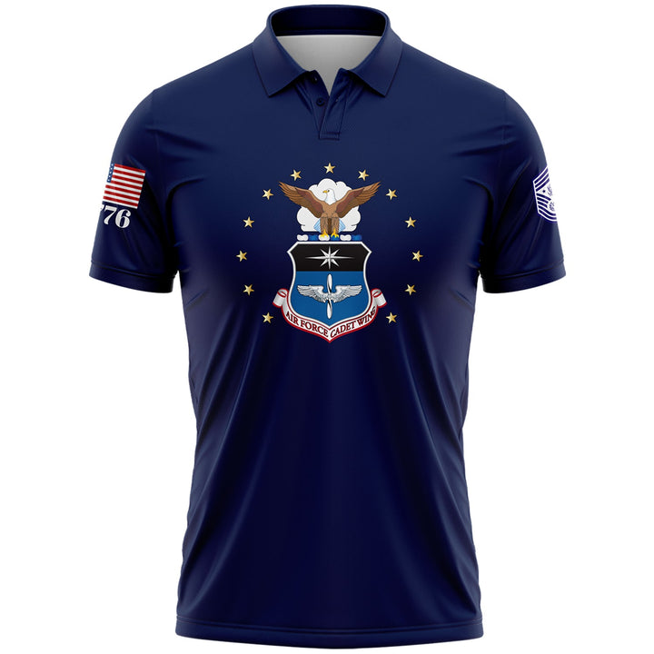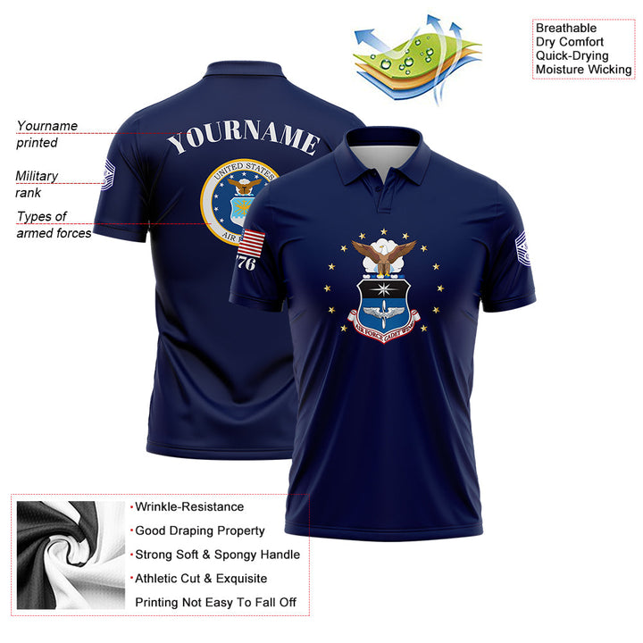 Custom Navy 1776 U.S Air Force Military Rank Name Golf Polo Shirt
