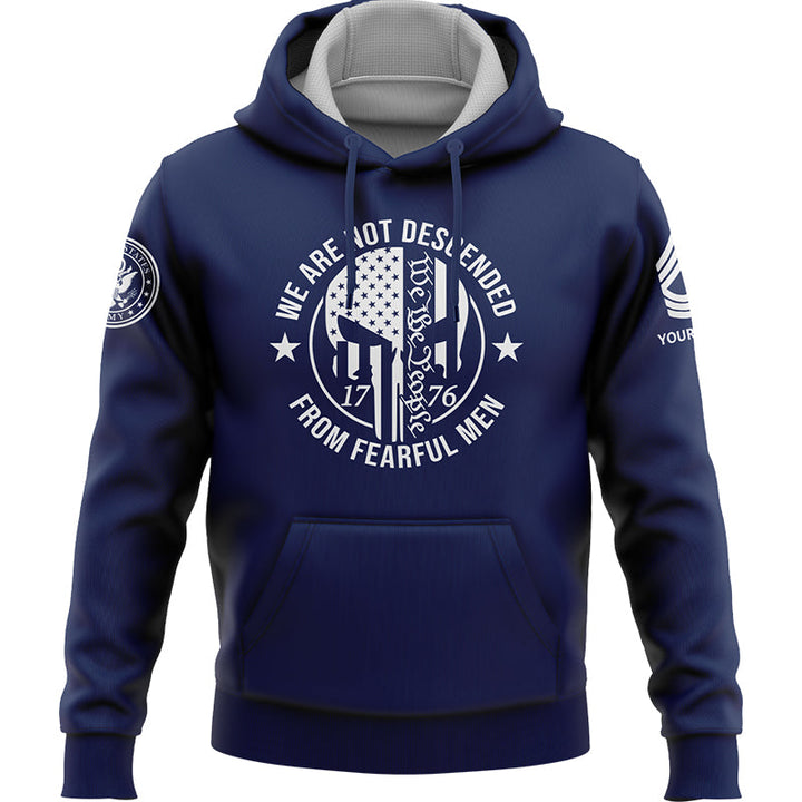 Custom Navy 1776 We Are Not Descended From Fearful Men Military Rank Veteran Name Hoodie