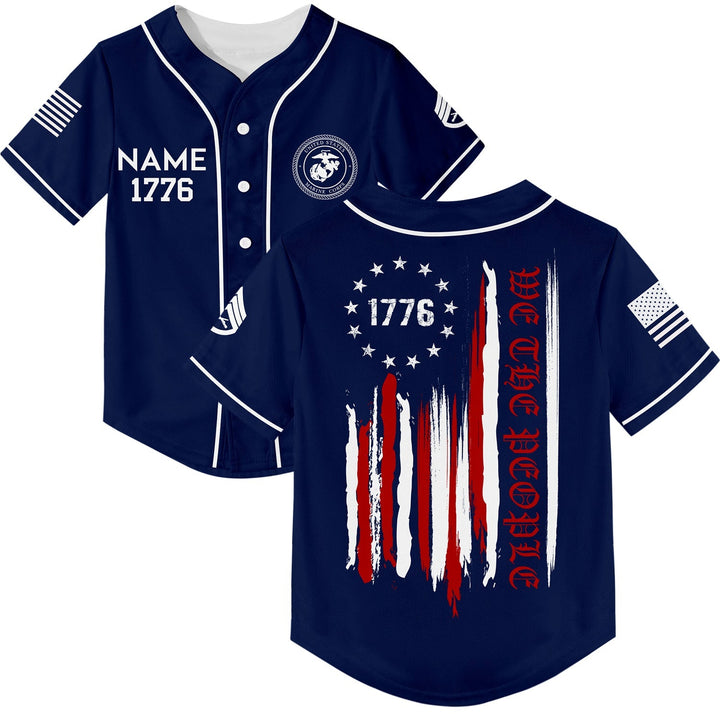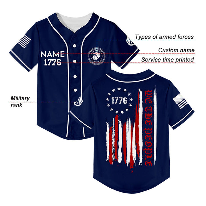 Custom Navy 1776 We The People Freedom American Flag Military Rank Veteran Name Baseball Jersey
