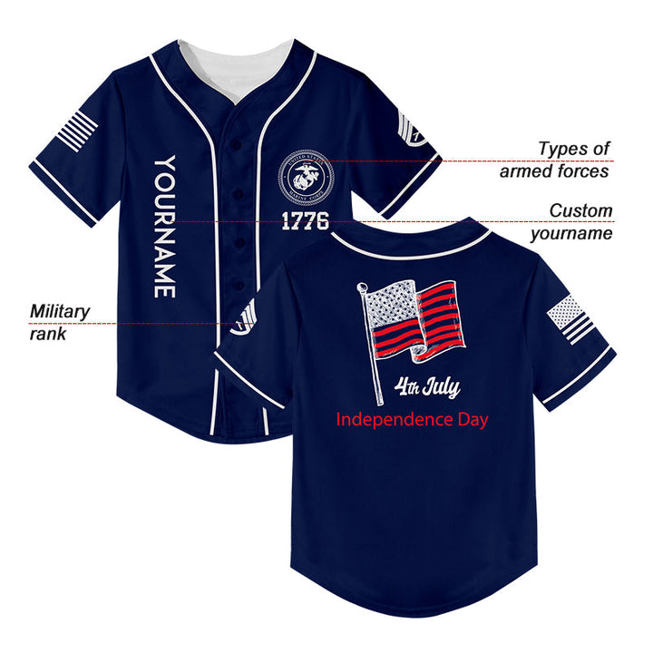 Custom Navy 4th July American Flag Military Rank Name Independence Day Baseball Jersey