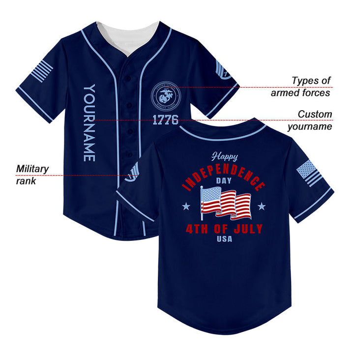 Custom Navy 4th Of July American Flag Military Rank Name Independence Day Baseball Jersey