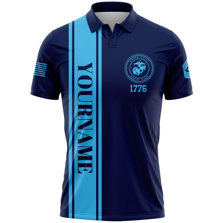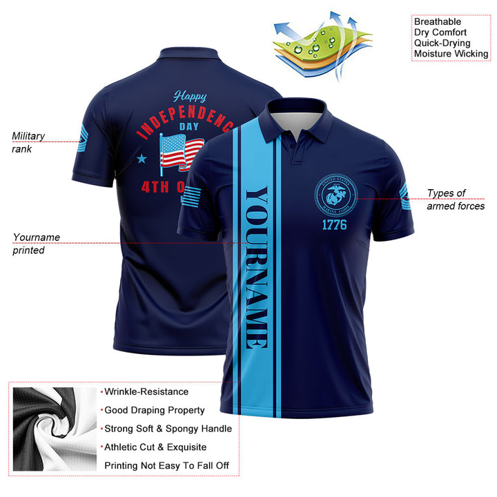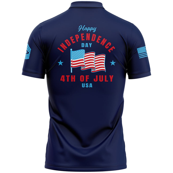 Custom Navy 4th Of July American Flag Military Rank Name Independence Day Golf Polo Shirt