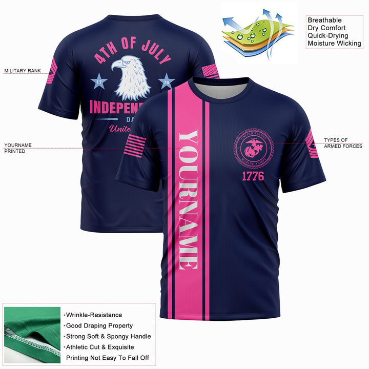 Custom Navy Eagle 4th Of July Military Rank Name Independence Day T-Shirt