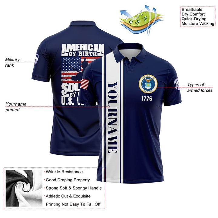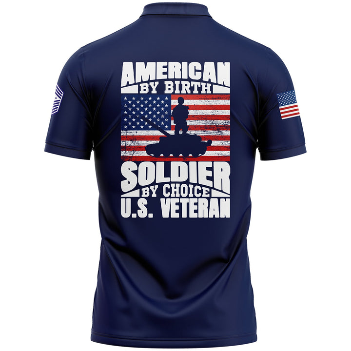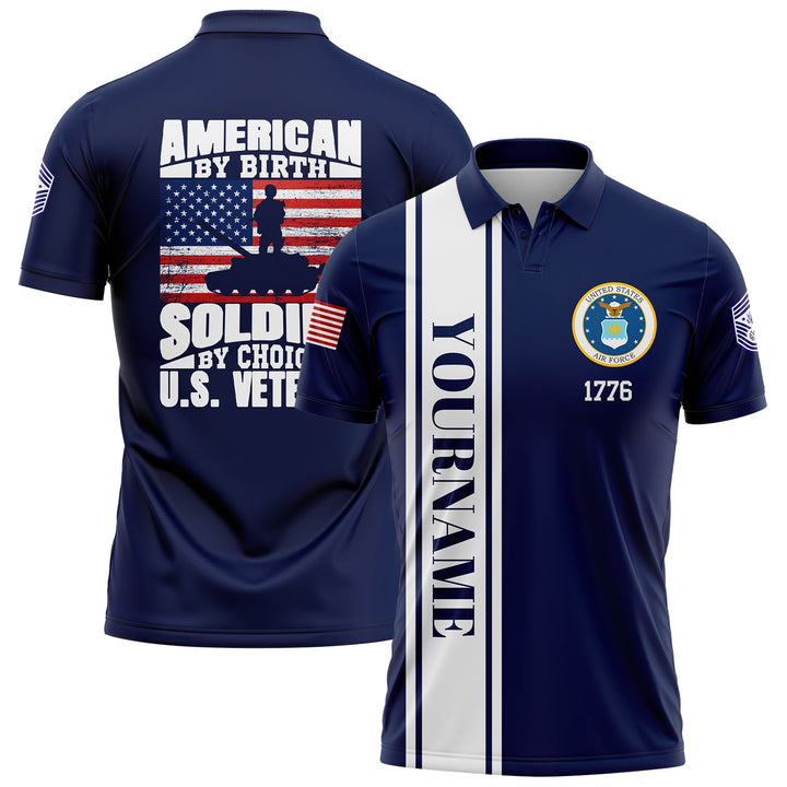Custom Navy American By Birth Soldier By Choice 1776 Military Rank Name Veterans Day Golf Polo Shirt
