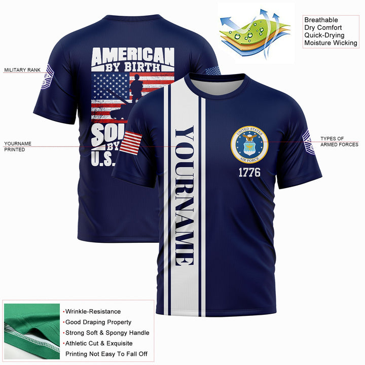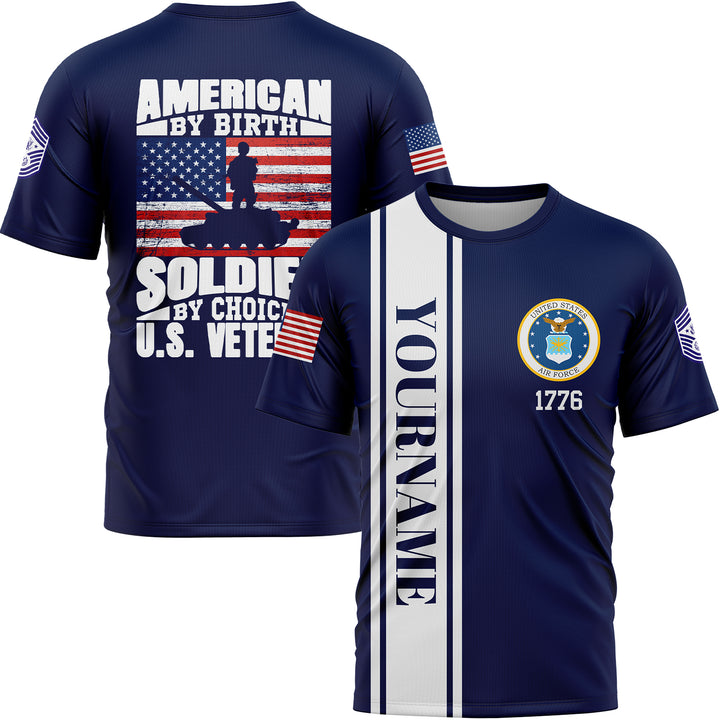 Custom Navy American By Birth Soldier By Choice 1776 Military Rank Name Veterans Day T-Shirt
