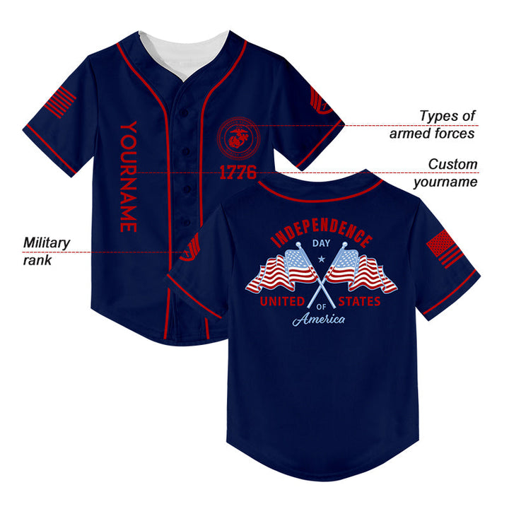 Custom Navy American Flag Military Rank Name Independence Day Baseball Jersey
