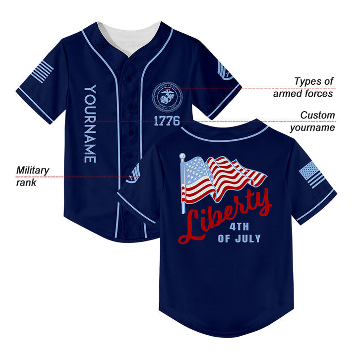 Custom Navy American Flag Military Rank Name Independence Day Baseball Jersey