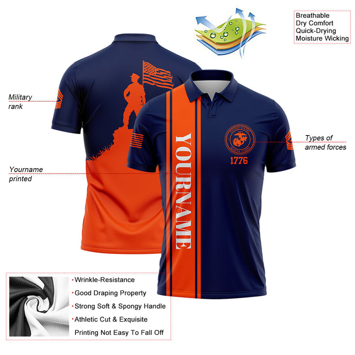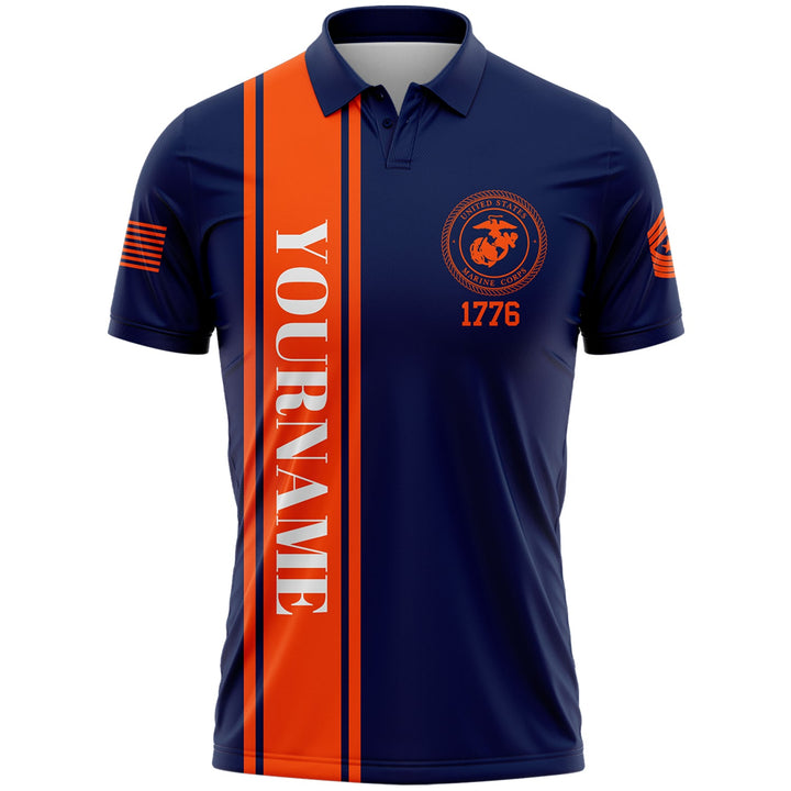 Custom Navy American Flag Military Rank Name Independence Day Golf Polo Shirt