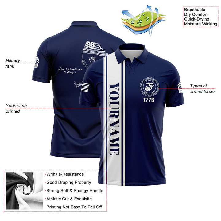 Custom Navy American Flag Military Rank Name Independence Day Golf Polo Shirt