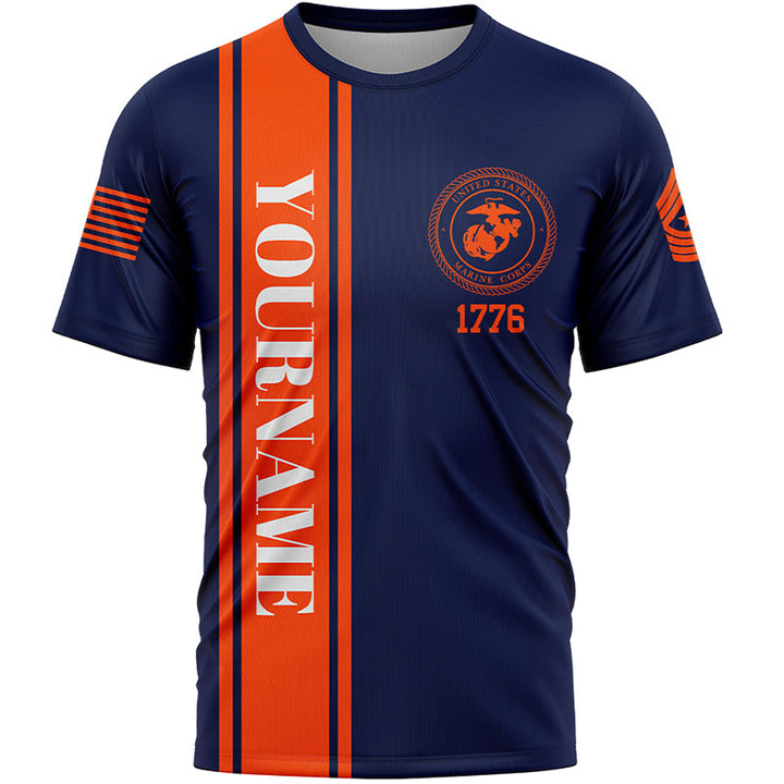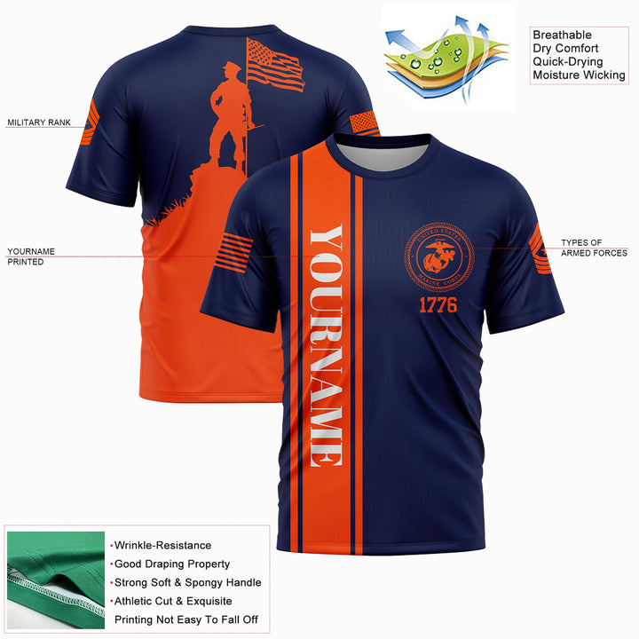 Custom Navy American Flag Military Rank Name Independence Day T-Shirt