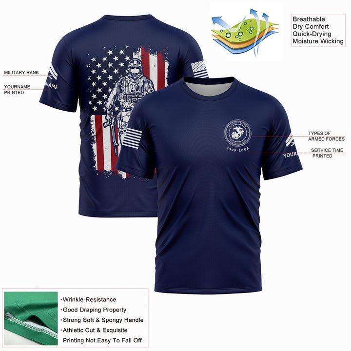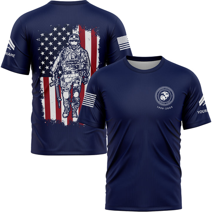 Custom Navy American Flag Military Rank Veteran Name T-Shirt