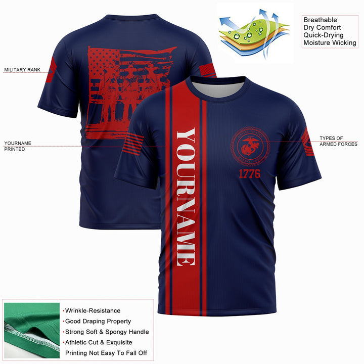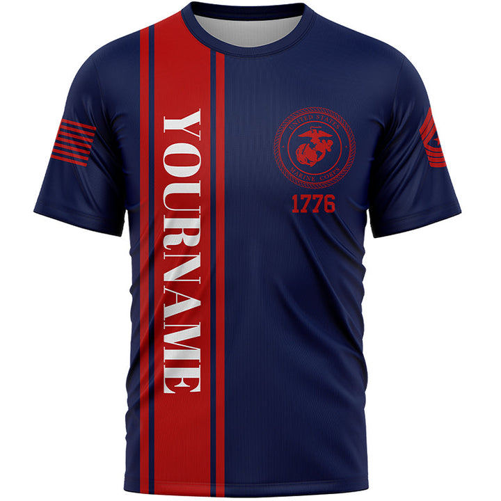 Custom Navy American History Flag Military Rank Name Independence Day T-Shirt