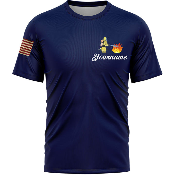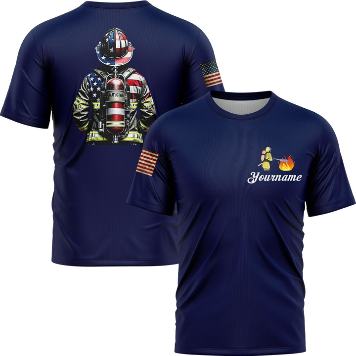 Custom Navy American Patriot Firefighter Name T-Shirt