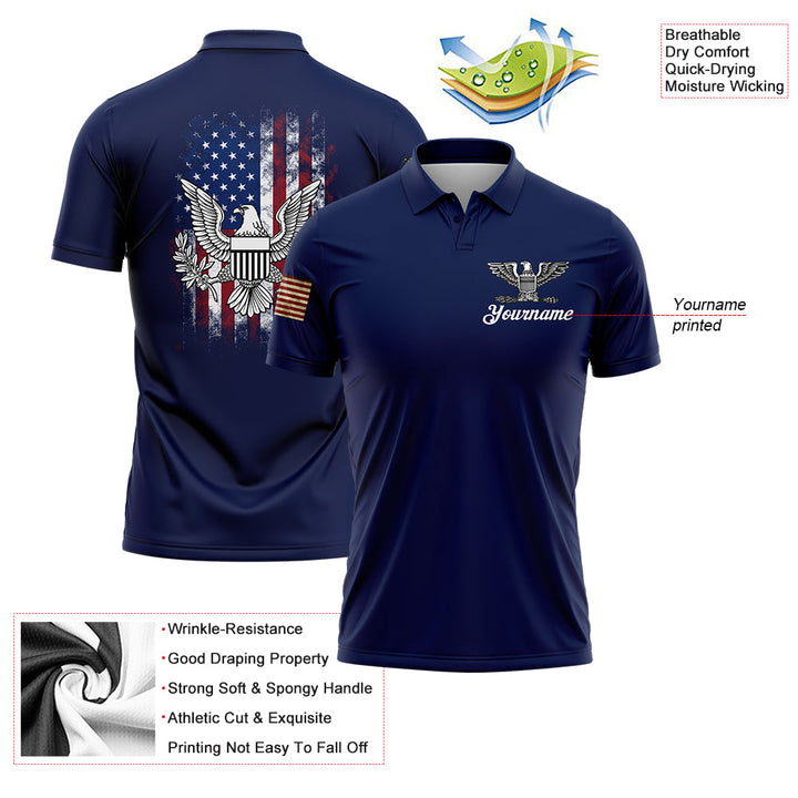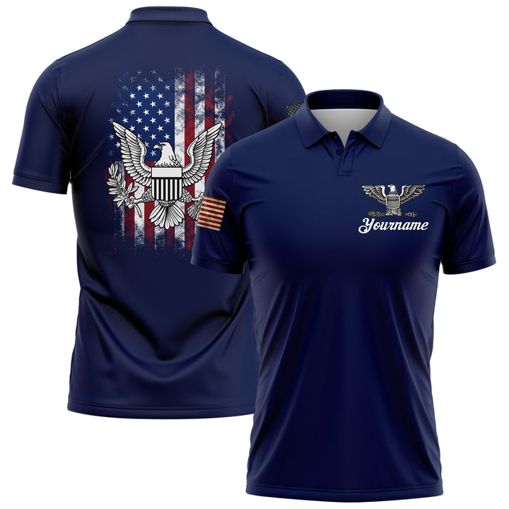 Custom Navy American Patriot Name Golf Polo Shirt