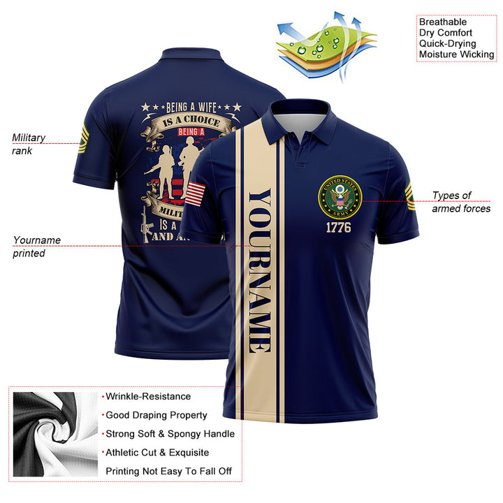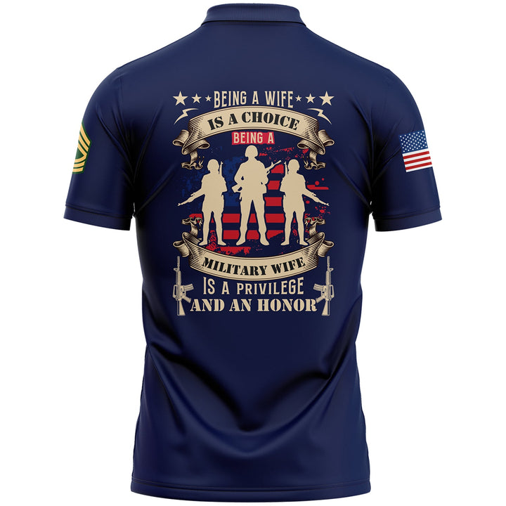 Custom Navy Being A Wife Is A Choice Being A Military Wife 1776 Flag U.S Army Military Rank Name Veterans Day Golf Polo Shirt | Father's Day Gifts