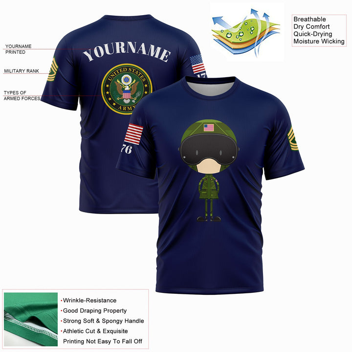 Custom Navy Cartoon 1776 U.S Army Military Rank Name T-Shirt
