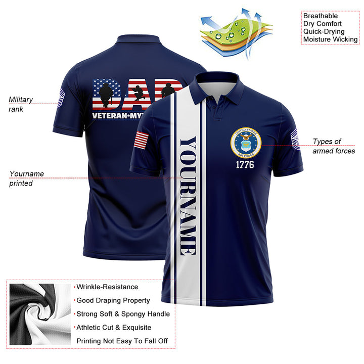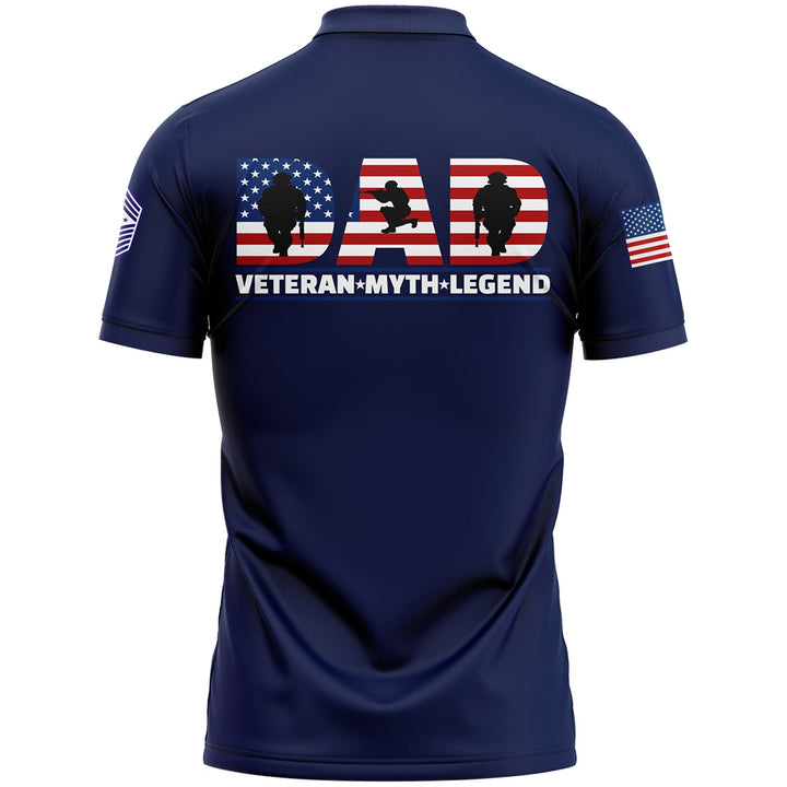 Custom Navy Dad Veteran Myth Legend 1776 Flag U.S Air Force Military Rank Name Veterans Day Golf Polo Shirt | Father's Day Gifts