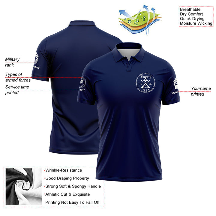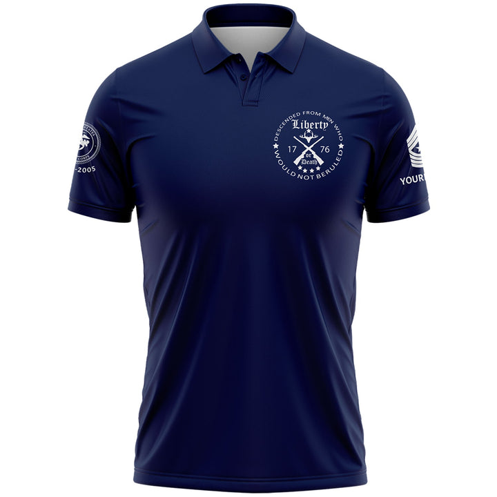 Custom Navy Descended From Men Who Would Not Beruled 1776 Military Rank Veteran Name Golf Polo Shirt
