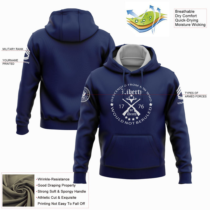Custom Navy Descended From Men Who Would Not Beruled 1776 Military Rank Veteran Name Hoodie