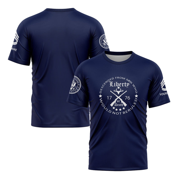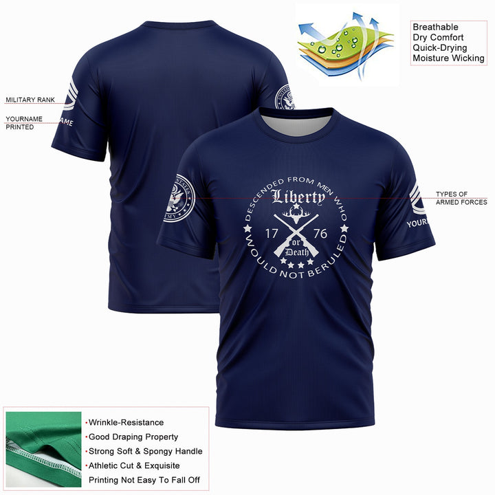 Custom Navy Descended From Men Who Would Not Beruled 1776 Military Rank Veteran Name T-Shirt