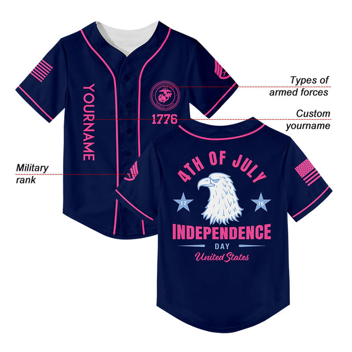 Custom Navy Eagle 4th Of July Military Rank Name Independence Day Baseball Jersey