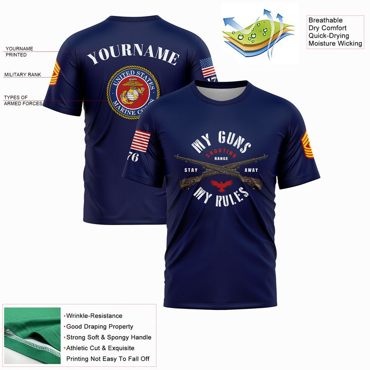 Custom Navy Eagle My Rules 1776 U.S Marine Corps Military Rank Name T-Shirt
