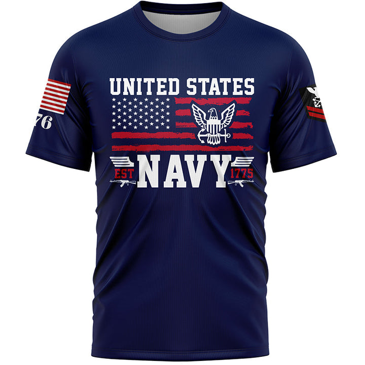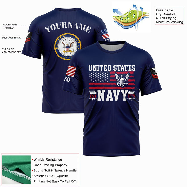 Custom Navy Est 1775 American Flag U.S Navy Military Rank Name T-Shirt