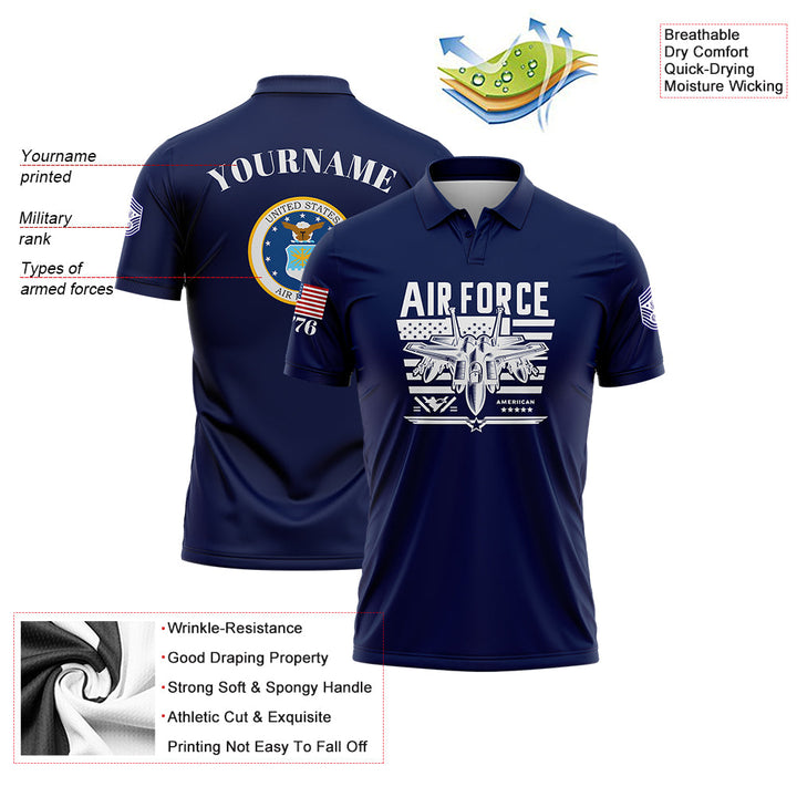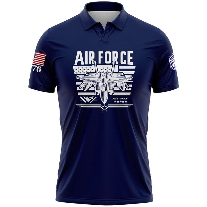 Custom Navy Fighter 1776 American Flag U.S Air Force Military Rank Name Golf Polo Shirt