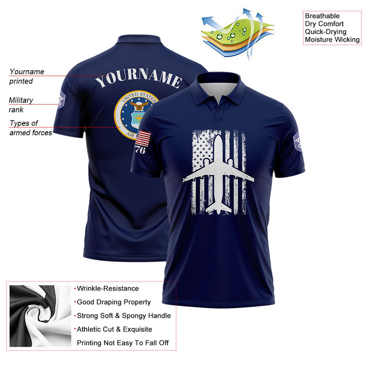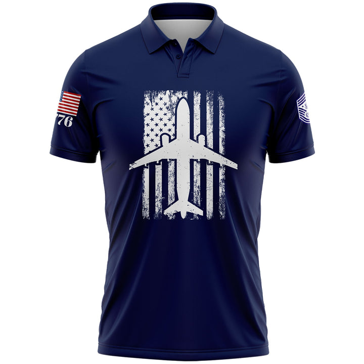 Custom Navy Fighter 1776 American Flag U.S Air Force Military Rank Name Golf Polo Shirt