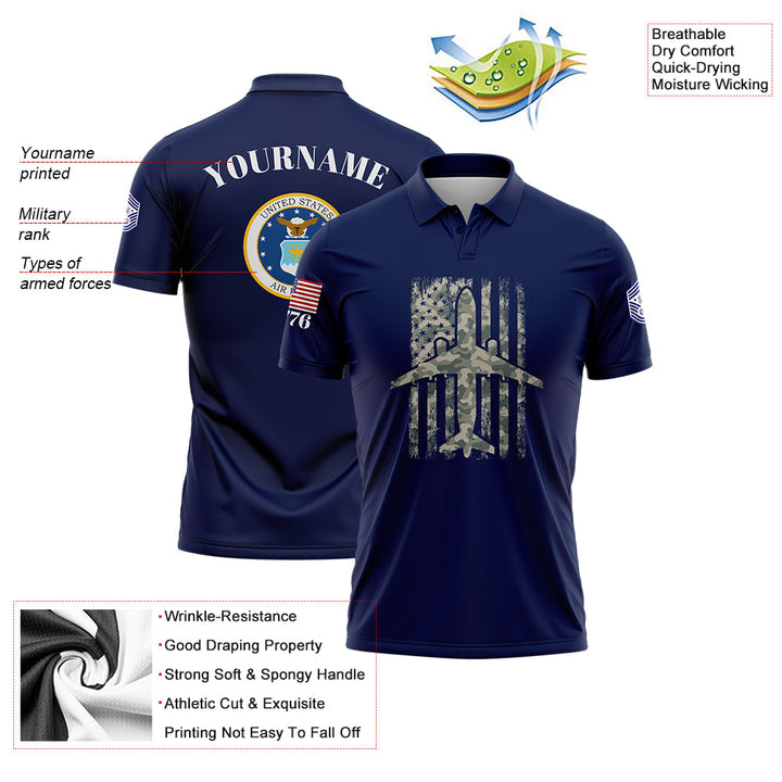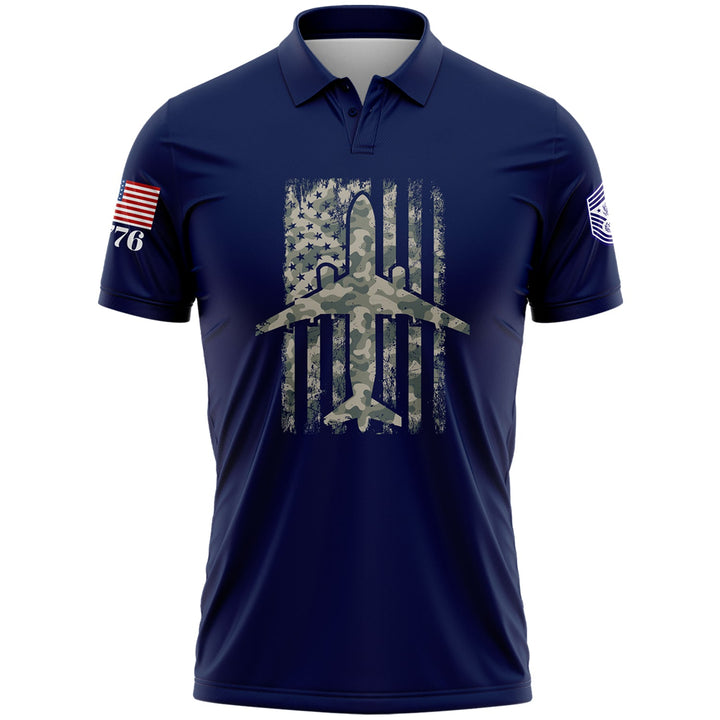 Custom Navy Fighter 1776 American Flag U.S Air Force Military Rank Name Golf Polo Shirt
