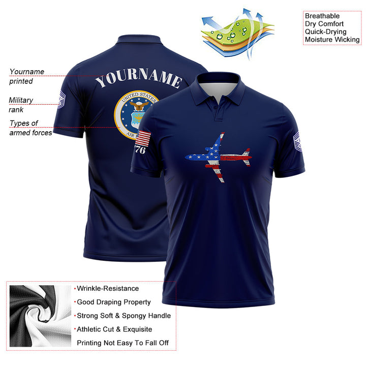 Custom Navy Fighter 1776 American Flag U.S Air Force Military Rank Name Golf Polo Shirt