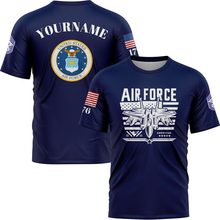 Custom Navy Fighter 1776 American Flag U.S Air Force Military Rank Name T-Shirt