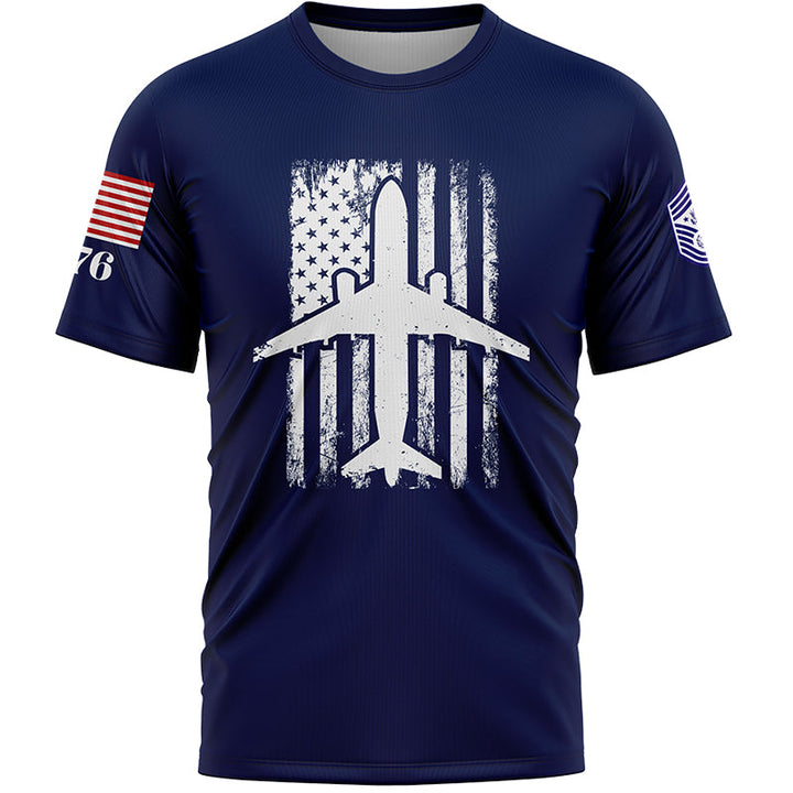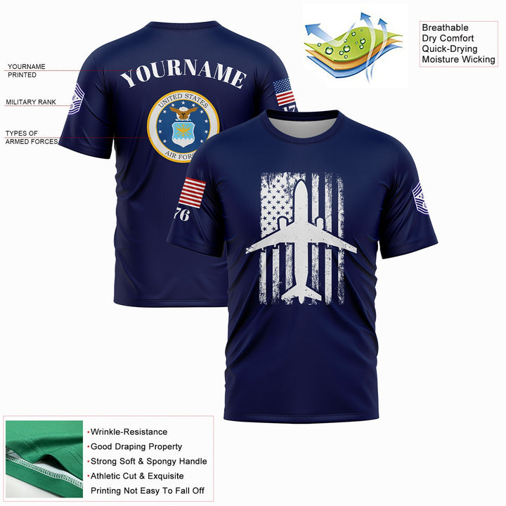 Custom Navy Fighter 1776 American Flag U.S Air Force Military Rank Name T-Shirt