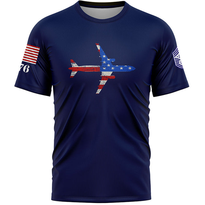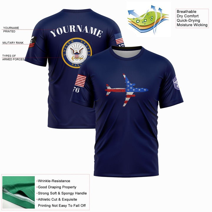 Custom Navy Fighter 1776 American Flag U.S Air Force Military Rank Name T-Shirt