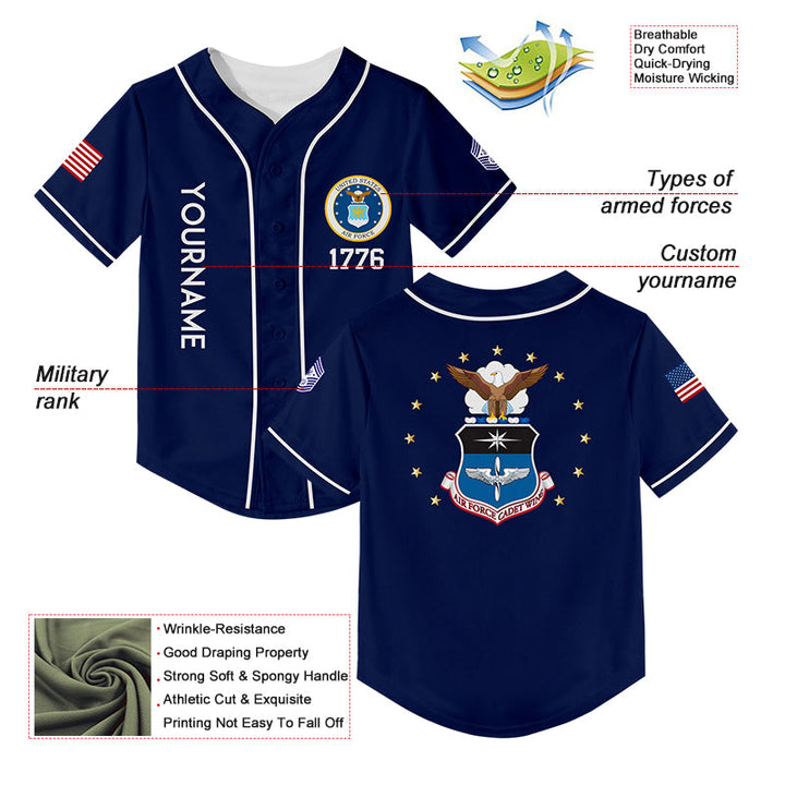Custom Navy Fighter 1776 U.S Air Force Military Rank Name Baseball Jersey