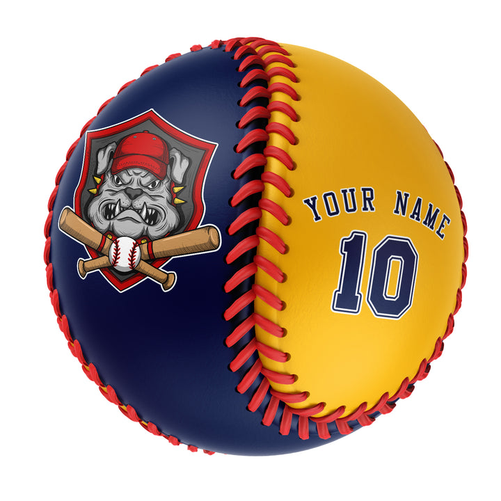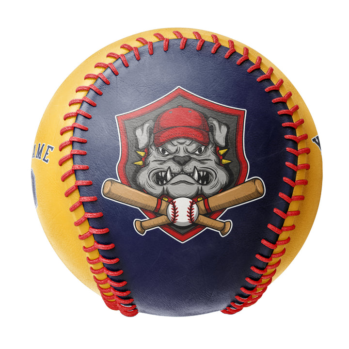 Custom Navy Gold Half Leather Navy Authentic Baseballs