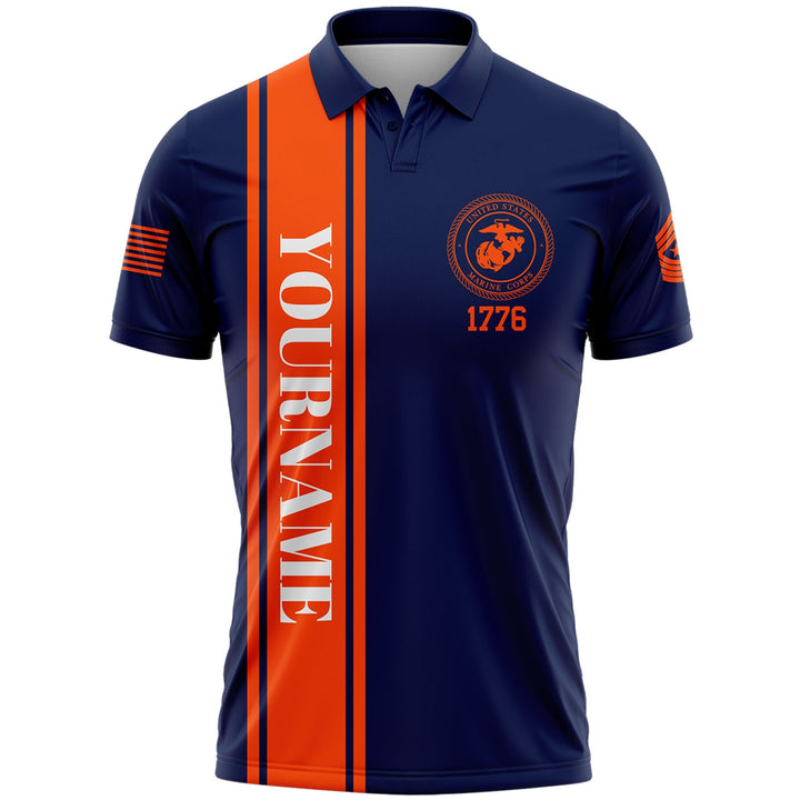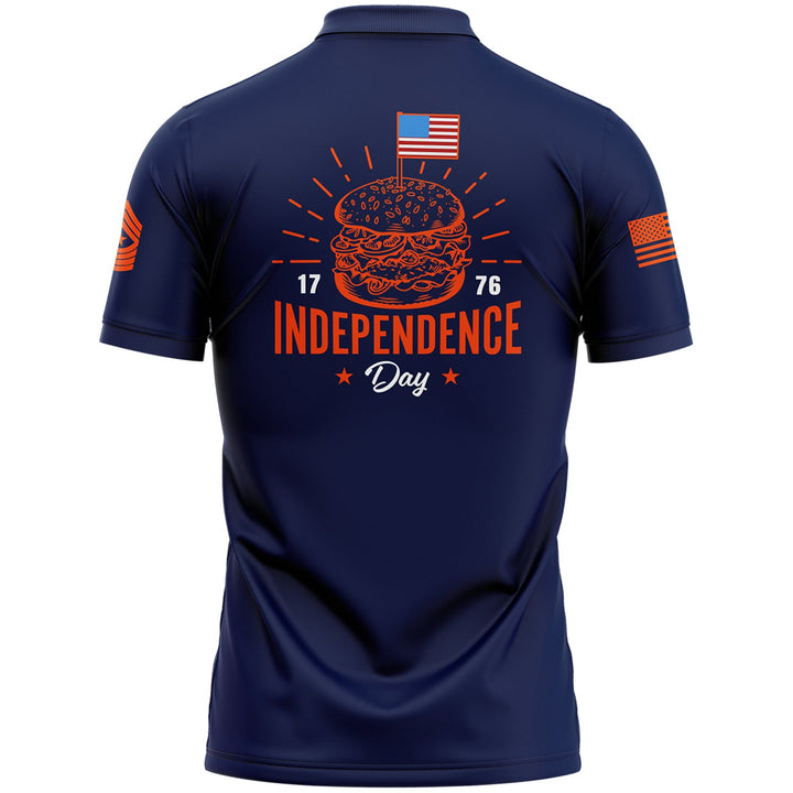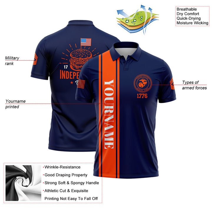 Custom Navy Hamburger American Flag Military Rank Name Independence Day Golf Polo Shirt